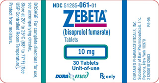 Zebeta contains active ingredient Bisoprolol Fumarate and belongs to a class of drugs called beta-adrenergic receptor blocking agents. Mechanism of its action is to prevent the chemicals transmitting nervous signal between nerves such as norepinephrine and adrenaline to bind receptors on nerves. This way heart rate and blood pressure are reduced as force of heart contractions and tone of blood vessels diminish.